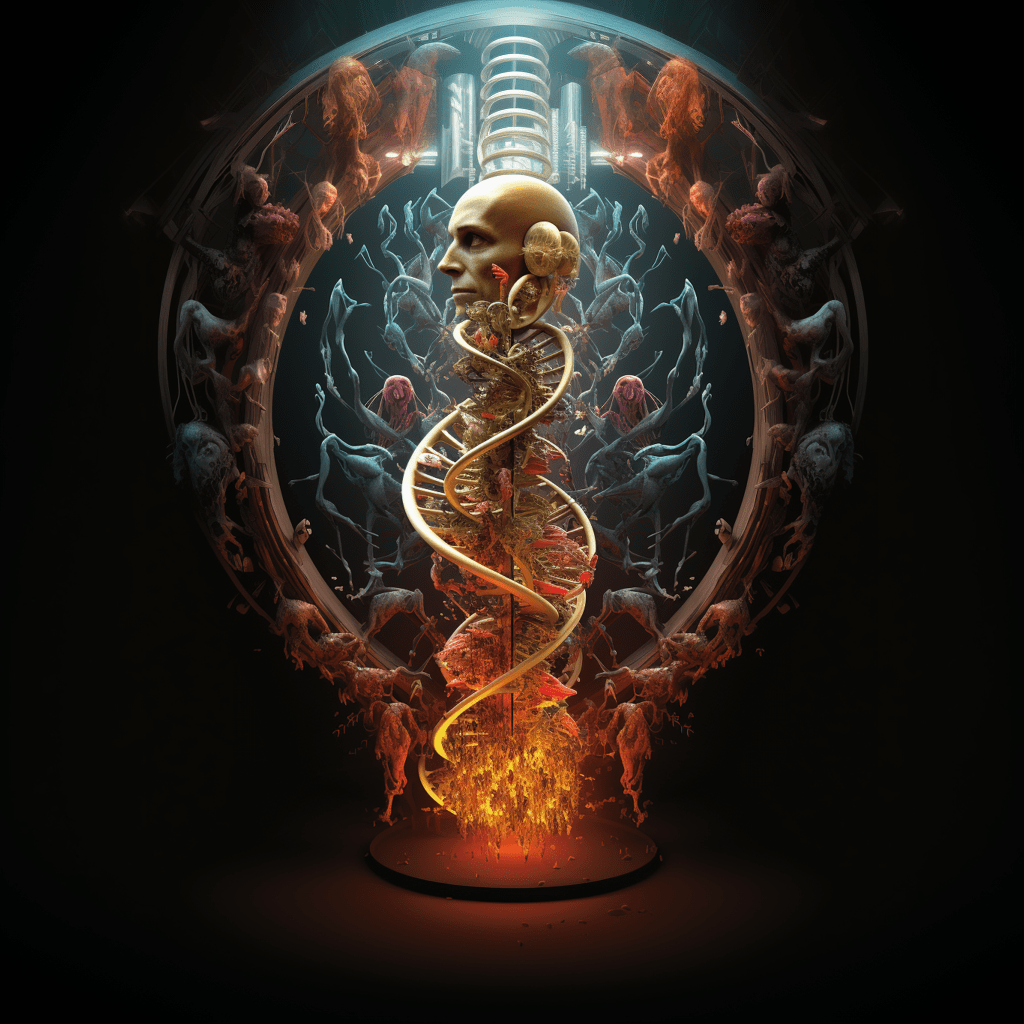 As the code of reality is inexplicably altered time and time again, it hears its own genetics; aware of the changes in the body taking place in real time, as genes express and translate themselves from within the realms of Chaos.
